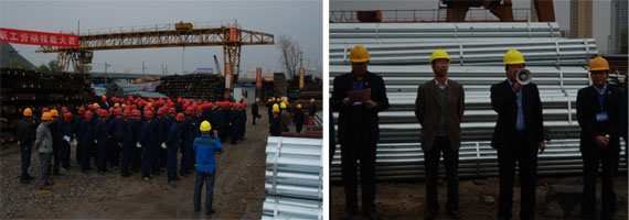 為落實(shí)集團(tuán)總公司《2014年安全生產(chǎn)工作要點(diǎn)》,豐富物產(chǎn)配送公司基層班組建設(shè),促進(jìn)一線職工綜合技能水平提升,以《吊裝作業(yè)規(guī)范手勢(shì)》為標(biāo)準(zhǔn),檢驗(yàn)公司一線司吊作業(yè)人員執(zhí)行國家規(guī)范手勢(shì)、司吊作業(yè)操作規(guī)程的實(shí)際效果,保證全年安全控制目標(biāo)的實(shí)現(xiàn)。物產(chǎn)配送公司在前期宣傳動(dòng)員、學(xué)習(xí)培訓(xùn)、實(shí)戰(zhàn)演練的基礎(chǔ)上,于2014年5月17日上午,舉行職工勞動(dòng)技能比武大賽。集團(tuán)總公司黨委書記白家林、集團(tuán)黨群工作部部長(zhǎng)趙宗青、安全環(huán)保部干事劉軍蒞臨現(xiàn)場(chǎng)指導(dǎo)。