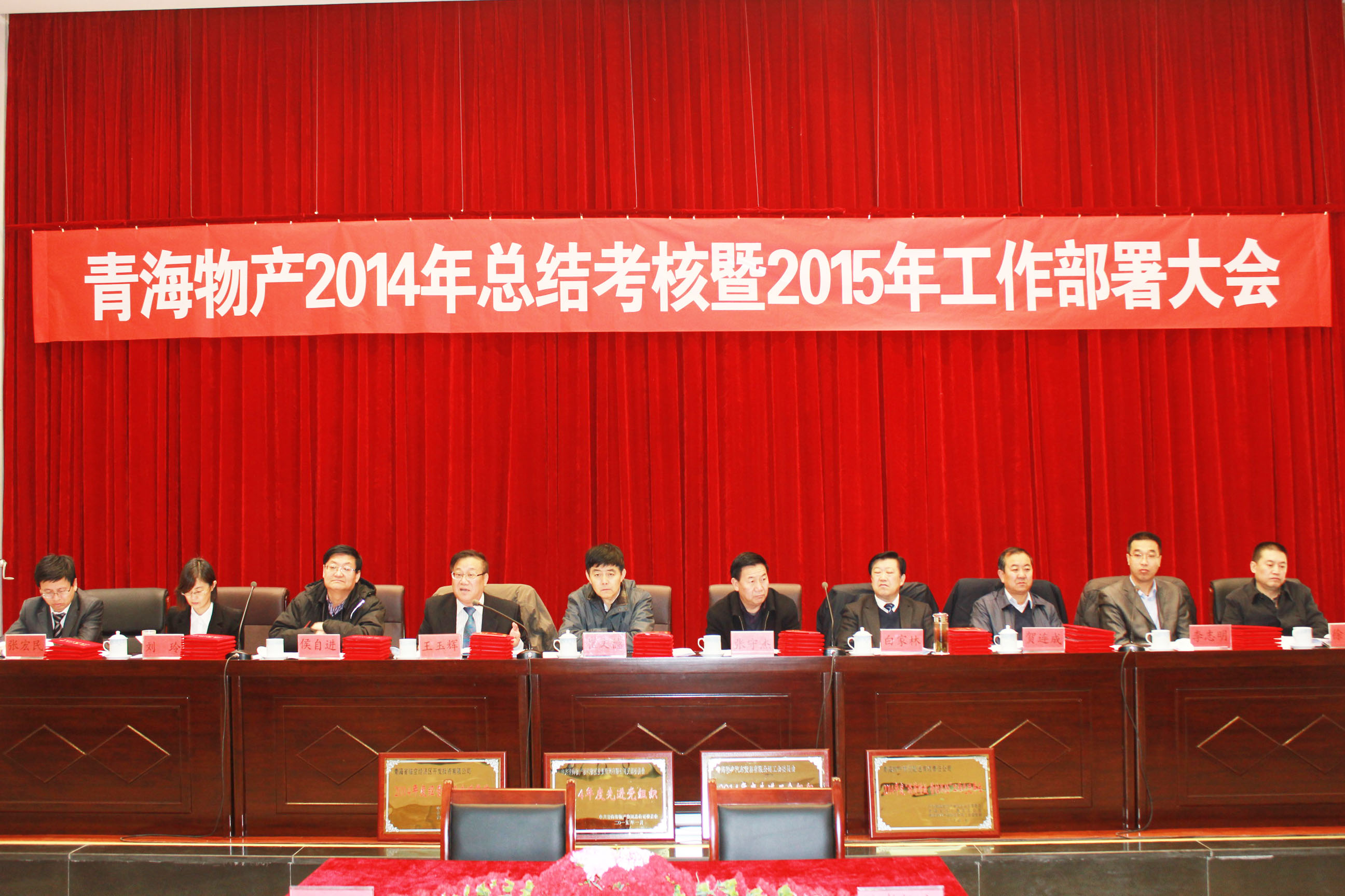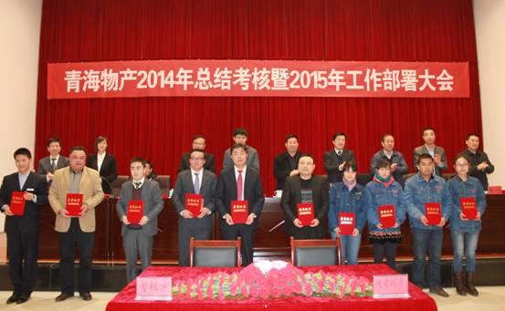 2015年1月31日,青海省物產(chǎn)集團(tuán)總公司召開"青海物產(chǎn)經(jīng)營發(fā)展2014年總結(jié)考核暨2015年工作部署大會(huì)"。 會(huì)議由集團(tuán)紀(jì)委書記李志明主持,省國資委黨委委員、副主任崔文德,省國資委第二監(jiān)事會(huì)主席張守杰、省國資委考核與分配處處長侯自進(jìn)、省國資委黨群工作處調(diào)研員賀連成、省國資委第二監(jiān)事會(huì)專職監(jiān)事唐剛、省國資委紀(jì)委干部李世晶蒞臨大會(huì),集團(tuán)領(lǐng)導(dǎo)、所屬各公司班子成員、受表彰人員、離退休人員、總部員工參加了會(huì)議。