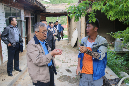 (圖為集團公司黨委書記、董事長王玉輝與草溝村村委書記在村民家中了解情況)