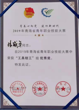 (集團團委?訊 張俊福/文)為隆重慶祝新中國成立70周年、青海解放70周年,7月24-26日,由共青團青海省委、青海省總工會、青海省人力資源和社會保障廳主辦的"青春心向黨 ? 建功新時代 "-2019年青海省青年職業技能大賽暨青年風采展活動在西寧舉辦。集團團委組織系統內7名青年技工參加決賽,經過激烈角逐,參賽選手物產工投公司青年職工張威年榮獲2019年青海省青年職業技能大賽鉗工組優秀獎;集團團委被授予2019年青年職業技能大賽優秀組織獎。