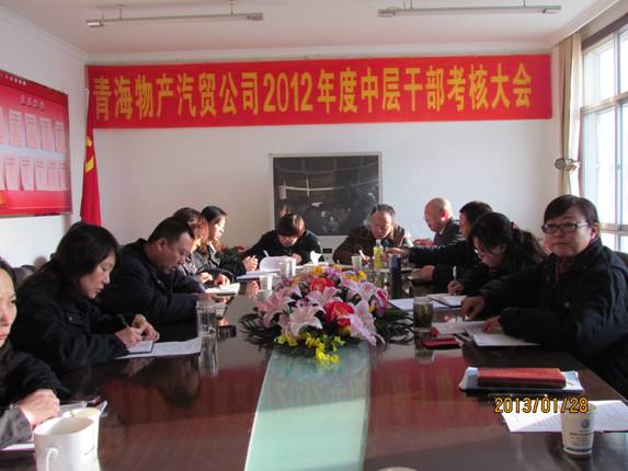 2013年1月28日,青海物產(chǎn)汽貿(mào)公司召開了2012年度中層干部考評會議,公司領(lǐng)導(dǎo),各部、海東分公司負(fù)責(zé)人,公司中層副職和重點(diǎn)崗位、骨干員工代表共28人參加了會議。會議由黨支部書記黃曉梅主持,總經(jīng)理張宏民做了重要講話。
